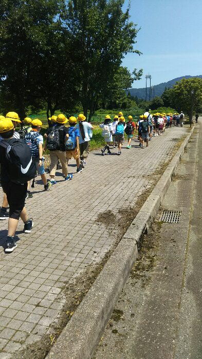 早速活動開始です。 まずは、昼食場所のたじまドームに向かっています。
