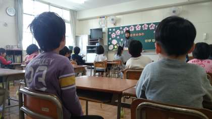 □1年生の朝の教室をのぞいてみました。