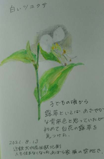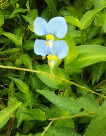 近くには、二段咲きの水色の露草も・・・、少し得をした気分に。