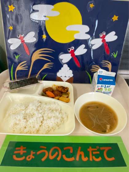 【今日の給食】 ●酢豚 ●中華みそスープ ●焼きのり ●ごはん