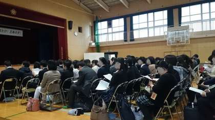 五条小学校の講堂に、天王寺区の8校の小学校の先生方全員が集まりました。