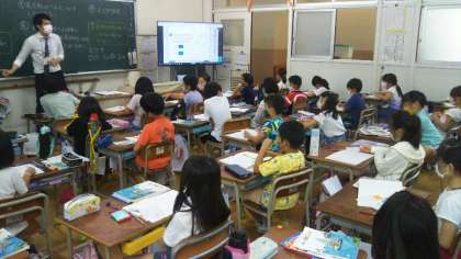 2年生の学級で、教育実習生の公開授業を行いました。算数図形の授業でした。