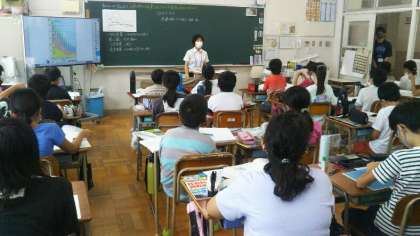 日本の漁業の課題について、子どもたちが資料から読み取ったことを発表する授業でした。