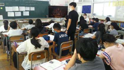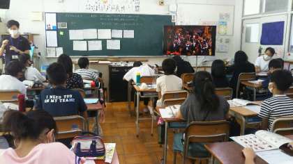 6年生が、音楽でオーケストラの演奏を鑑賞していました。