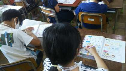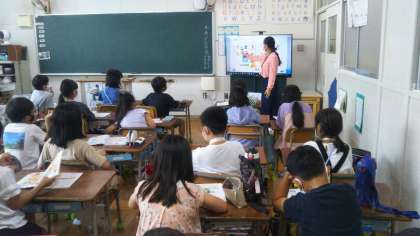 先生も子どもたちもノリノリで楽しく学習していました。