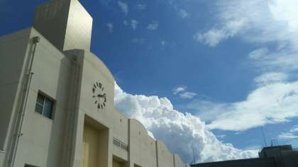 明日は、秋分。秋めいていく時節のはずですが、校舎を回っていてふと窓の外を見ると入道雲が・・・