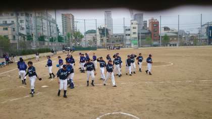 雨の中、がんばっています。 1回戦終了の時の写真。 大勝でした!!