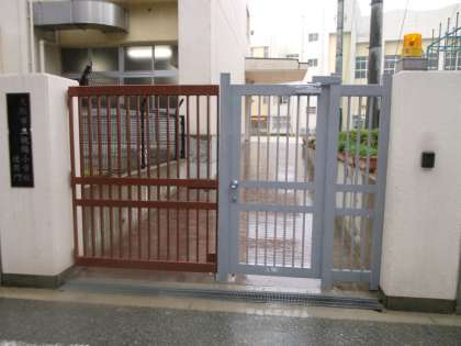 改修前の門は、右側の扉が潜り門のようで、開いた状態でも、