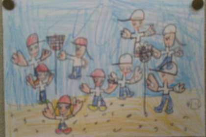 校内の掲示板に、運動会のイラストが掲示されていました。
