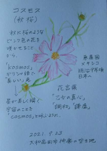 今週末から10月に入ります。 コスモスがゆれる季節になってきました。