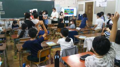 リズムに合わせてテンポよくくり返し話したり歌ったりすることで、英語を話すことに慣れていきます。