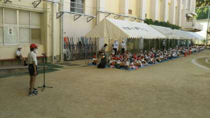 児童代表が、12年生の前であいさつしてくれました。 3年生以上は、教室でテレビ放送で開会式に参加しました。