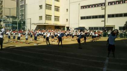 桃陽体操で体をほぐし、1部運動会が終わりました。 2部3部の運動会は、教室でテレビ観戦しながら応援します。