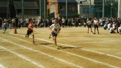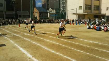 中間得点発表では、接戦になっています。勝敗は、最後56年生のリレーで決まります。