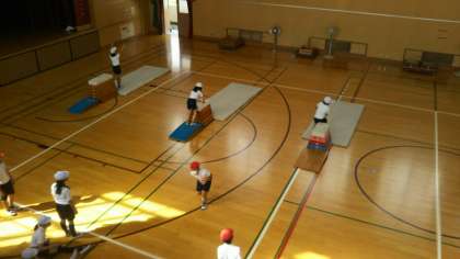 3年生が「跳び箱運動」に取り組んでいました。スモール・ステップで練習を重ね、跳び箱をこわがらずに跳べるようになってきています。