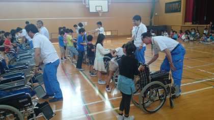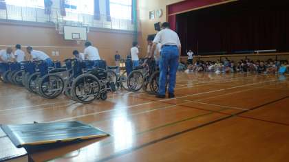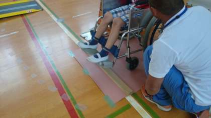 車いすの扱い方を習った後、実際に車いすを体験しました。