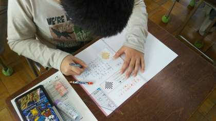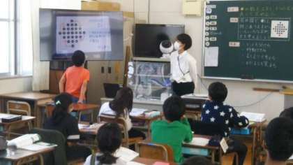 4年生が、算数で一定の規則性を持って並べられたドットの合計数を、式に表して求める学習をしました。
