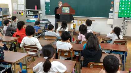 2年生2クラスともとても真剣に聞いていました。
