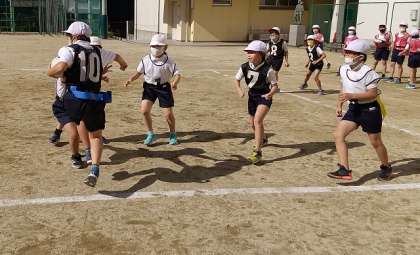 それでも子どもたちは元気!3年生が、体育でタグラグビーをしていました。パス回しやランもなかなか様になってきました。