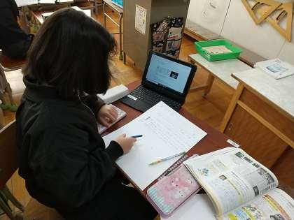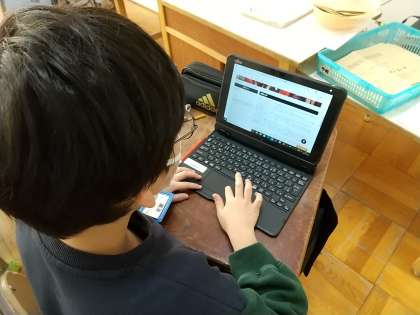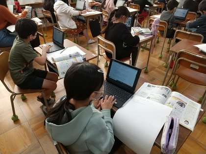 タブレットで情報を集め、自分で必要だと思う内容をまとめていく学習です。