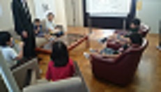 大きなソファーに座って、まるでお客さんみたいだね!!