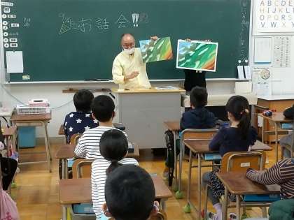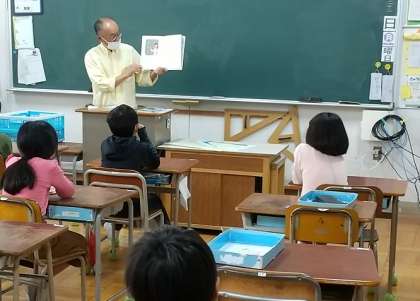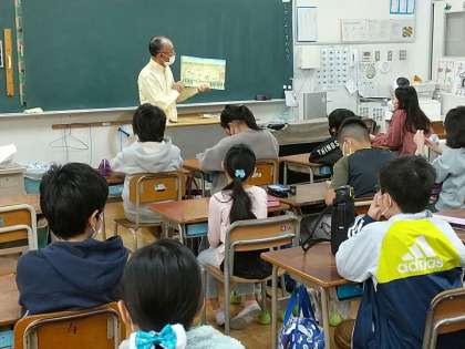 先日の3年生に続いて、絵本作家の中川さんに来ていただき、4年生3クラスで絵本の読み聞かせをしていただきました。
