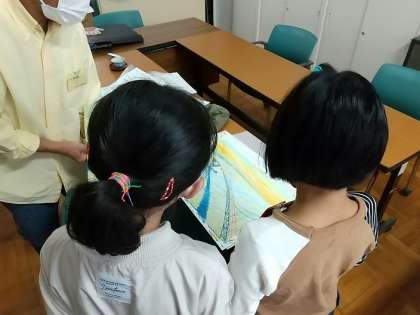 休み時間に、中川さんに校長室で休憩していただいているところに5年生の子どもが来たので、特別に絵本の原画を見せていただきました。
