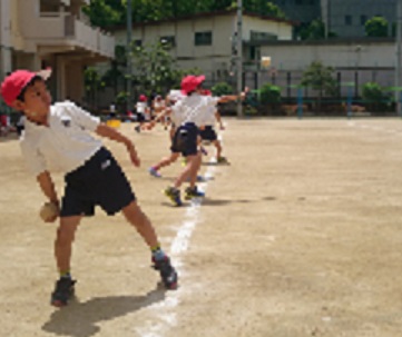 とおくに投げる子。足元になげてしまう子。いろんな子がいます。