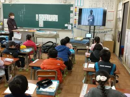 体育主任の先生からは、なわとびカード全クリア達成児童の発表がありました。(写真下)