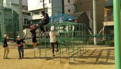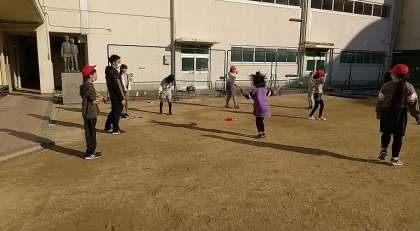 担任の先生になわとびの技を見てもらったり、一緒にジャングルジムに上ったり・・・