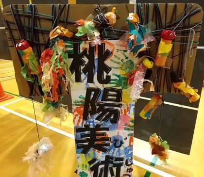 なかよし学級の子どもたちが、共同で作品展の看板をつくってくれました。 ぶらさがっている ミノムシたちに注目!