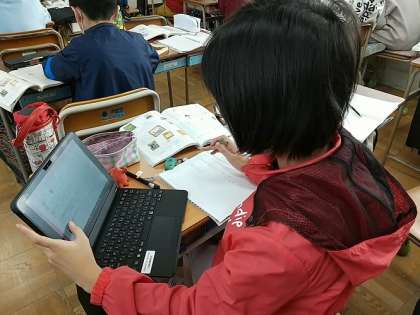 5年生は、国語で本の魅力やよさを伝える学習をしています。