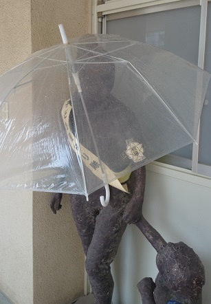 雨の時は、傘に校章がついています。