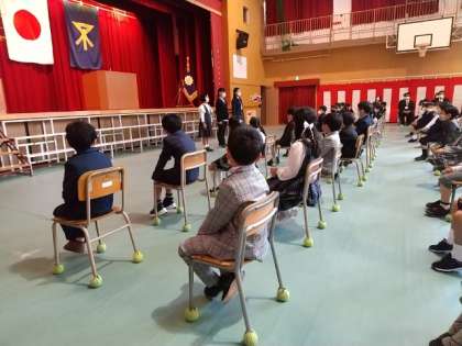 6年生の代表児童3人が出席し、しっかりとあいさつができました。誇らしいです。