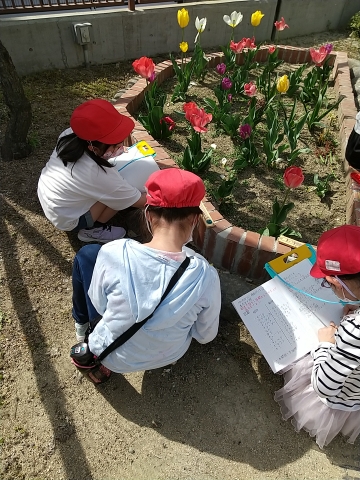 4年生が理科の学習で春の生き物の様子を観察していました。