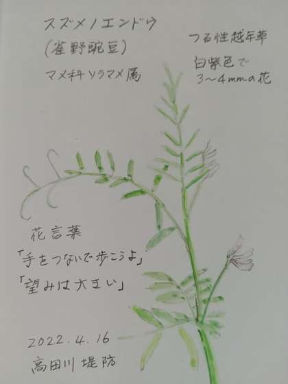 以前紹介したカラスノエンドウに比べ、とても小さな花をつけます。・・・だからスズメノエンドウ。