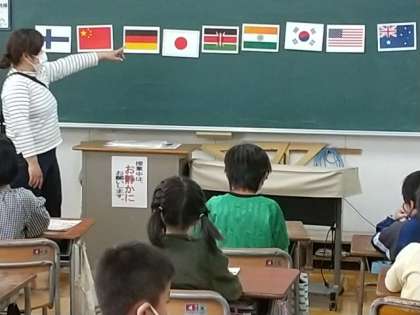 今日は、いろいろな国の言葉で、「こんにちは」を言う学習をしていました。