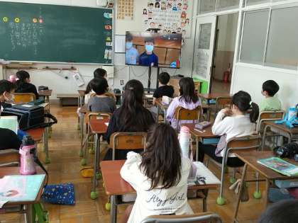 今日の放送児童朝会では、前期代表委員の子どもたちの紹介がありました。