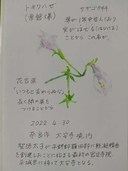 この花、日本原産らしいけど、聖徳太子の昔から大和の地に咲いていたのだろうか・・・。