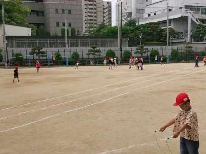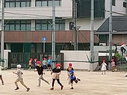 お休みが続きましたが、ひさしぶりに友だちと運動場で遊んでいます。