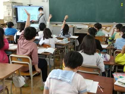 4年生の算数は、学年3分割の少人数授業で、「折れ線グラフと表」の学習を進めています。