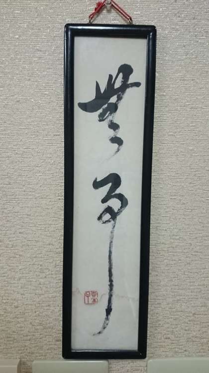 1986年にドイツへ渡るときに、母が持たせてくれた母直筆の「無事」と書かれた額(写真)。