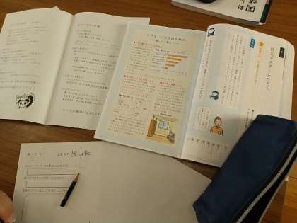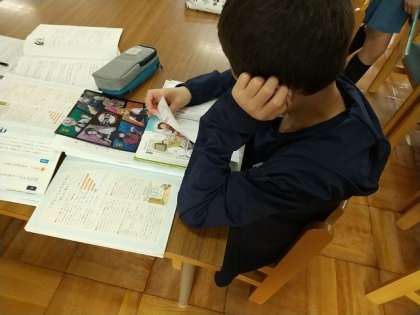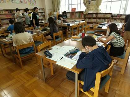 6年生が、国語で「防災」について調べ、ポスターの形にまとめる学習をしています。