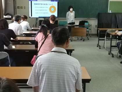 放課後、大阪市教育委員会指導部英語イノベーショングループから講師の先生を招いて英語教育の研修会を行いました。