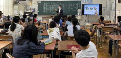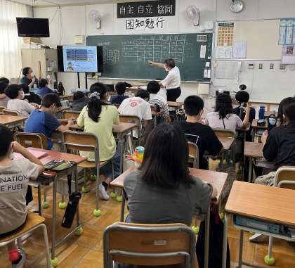 天王寺税務署の方に来ていただき、6年生に租税教室(税の仕組みや役割、必要性についての学習)を行っていただきました。
