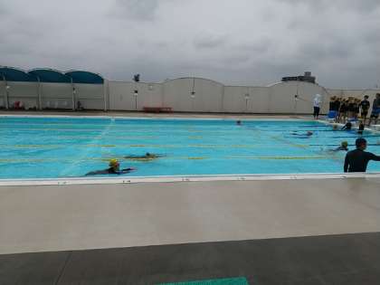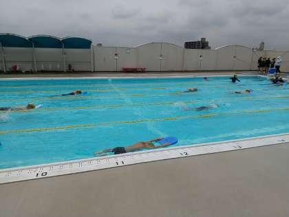 6年生が、クロール・背泳ぎ・平泳ぎと練習コースを分けて水泳の学習に取り組んでいました。