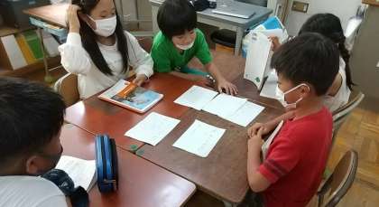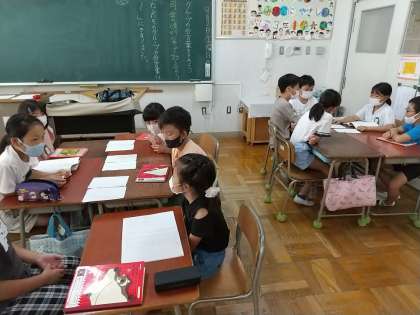 3年生が、「グループの合言葉を決めよう」というテーマで、話し合っていました。
