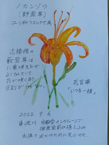 ヤブカンゾウの花弁が八重に対して、こちらは一重。