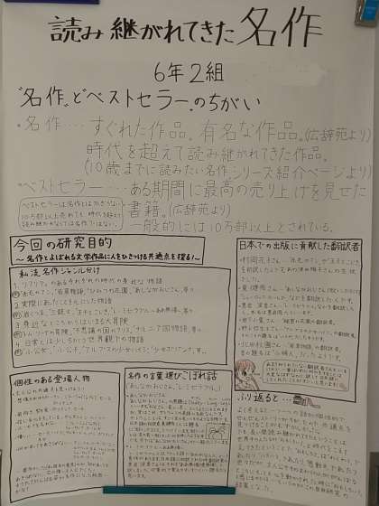 6年生の女の子が、「読み継がれてきた名作」について調べ、まとめました。