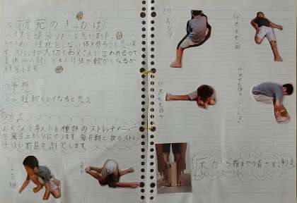 バスケットボールでけがをしないために、ストレッチが大切とお父さんに言われたのが、研究のきっかけ。